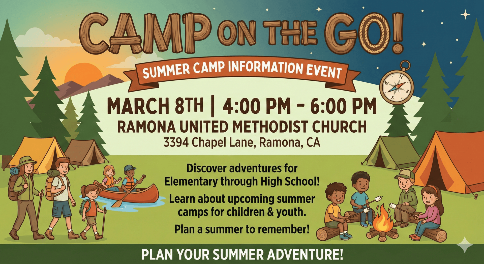 The RYC is bringing summer camp to Ramona! Camp Cedar Glen, one of the summer camps RYC is partnering with this summer, is bringing a little bit of camp to Ramona United Methodist. Along with bringing games, archery, ax throwing, crafts, and a giant inflatable obstacle course, the summer camp coordinator will also be present to answer any questions. The event runs from 4 to 6pm with pizza, snacks, and refreshments provided. Families are welcomed to hang out with info for youth and children from 1st through 12th grade.